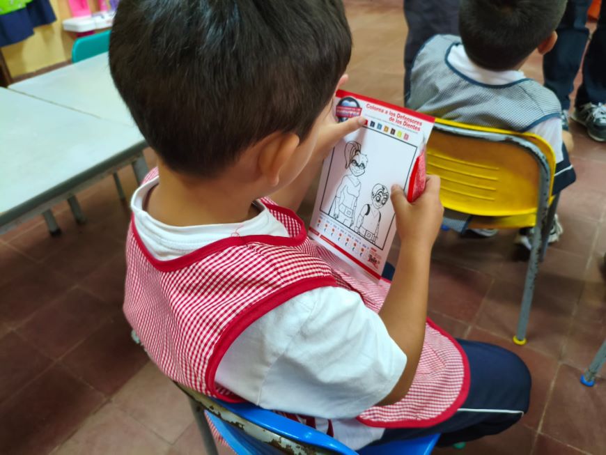 Asimismo, se entregaron materiales didácticos consistentes en dibujos temáticos para colorear, diseñados como refuerzo pedagógico para fijar los conocimientos adquiridos sobre el cuidado de la dentición de manera lúdica.