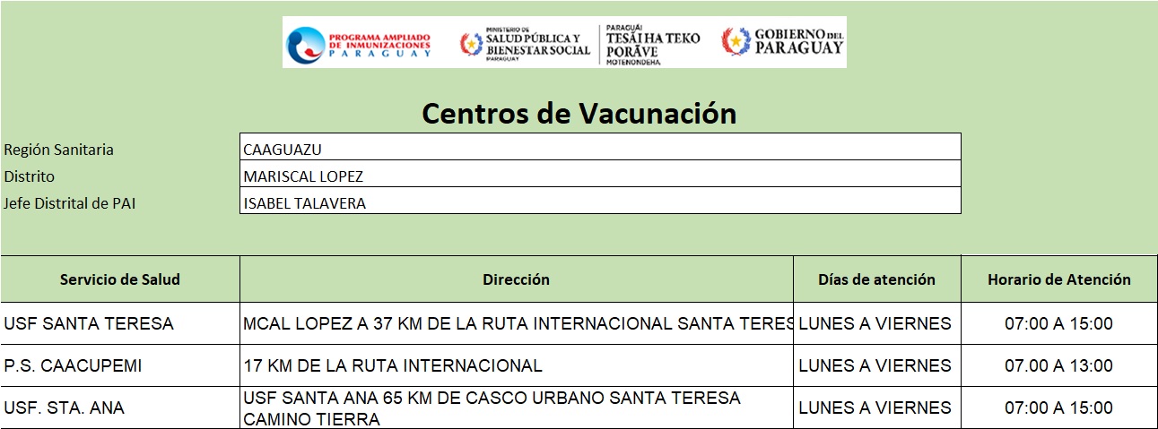 Centros de Vacunación.