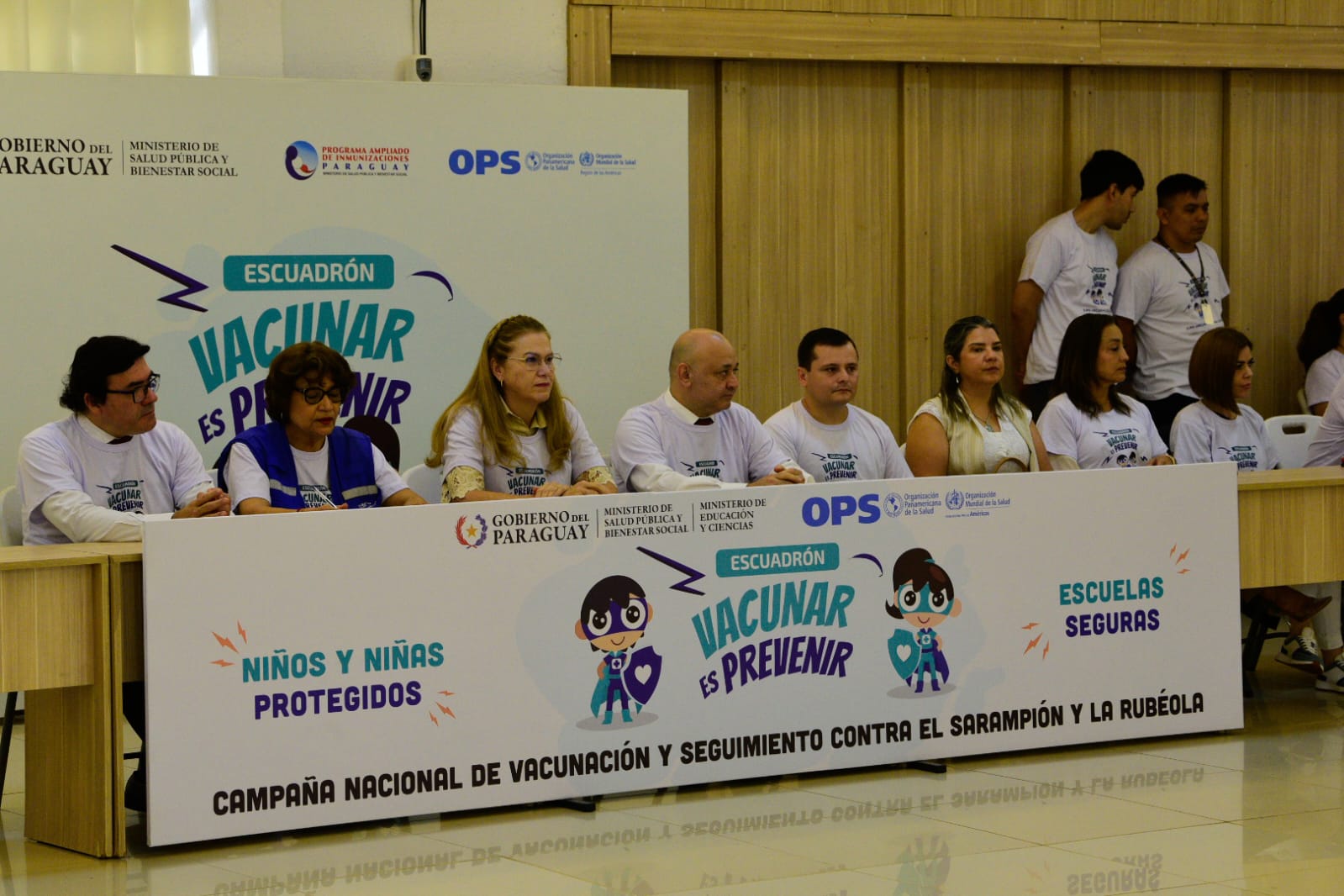 La actividad contó con la presencia de la ministra de Salud Pública, Dra. María Teresa Barán W.; el viceministro de Rectoría y Vigilancia de la Salud, Dr. José Ortellado; directores generales, directores, jefes regionales del PAI y autoridades sanitarias de todo el país. Asimismo, participó la representante interina de la Organización Panamericana de la Salud (OPS/OMS), Dra. Haydee Padilla, y representantes del Ministerio de Educación.